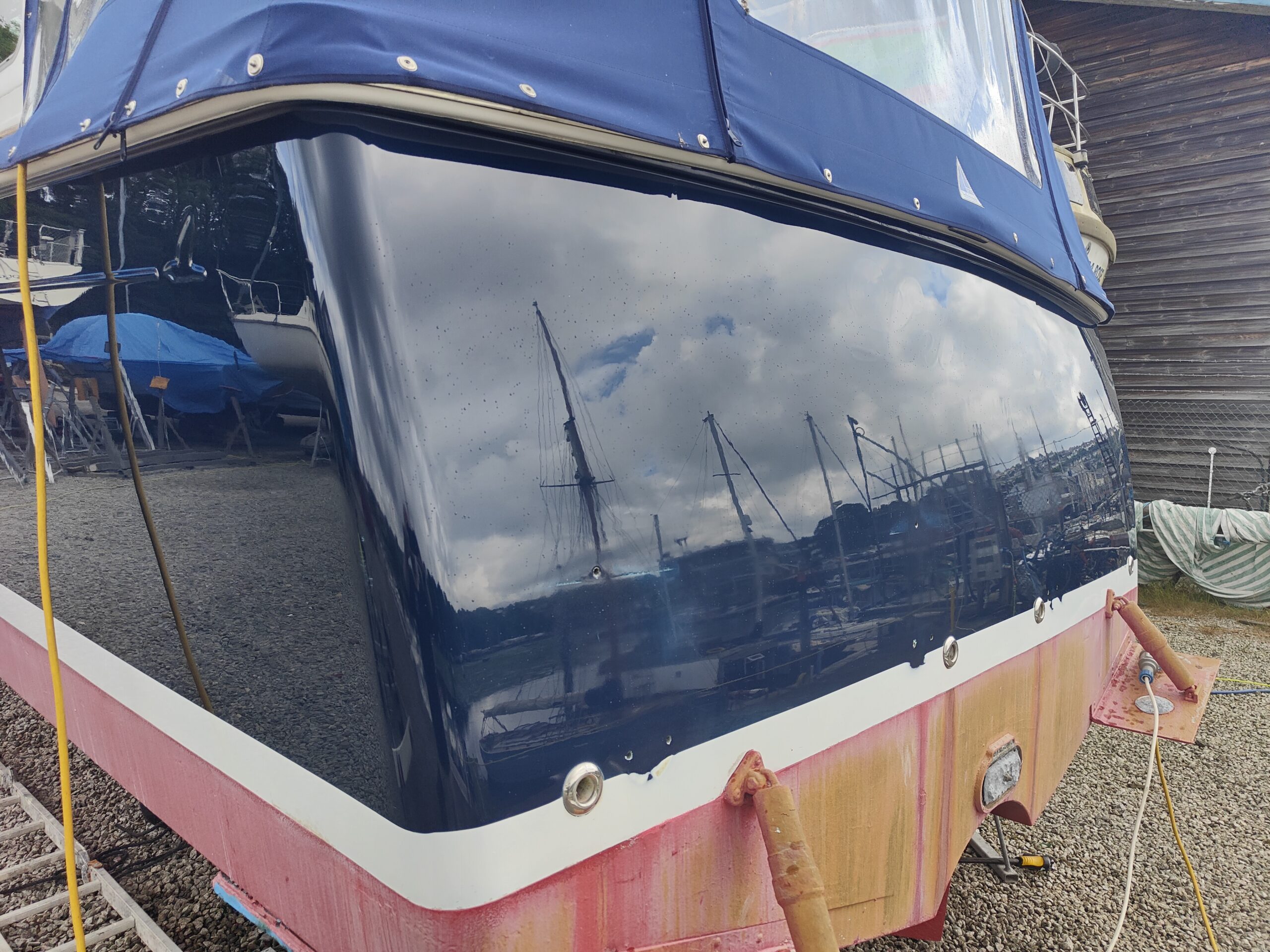 Once the boat is cleaned and fully dried, GRP correction can take place to remove dull/faded GRP and bring the mirror finish back to your boat. This can be achieved by a single stage machine polish or a more in-depth multiple stage polishing process (a patch test will be required before quote is given to determine how many stages of machine polishing or sanding is required).
